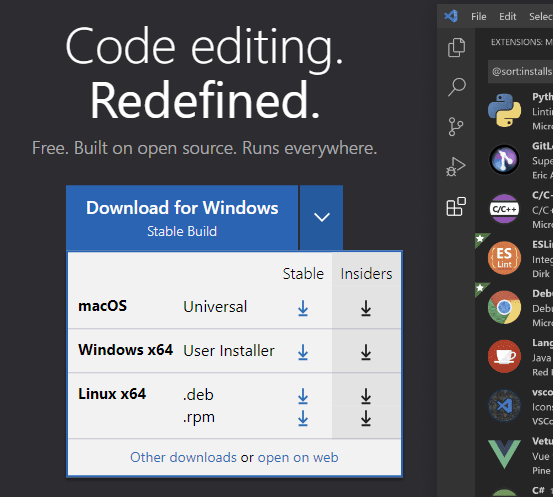 https://code.visualstudio.com/ 에 접속하여 macOS-Stable로 설치하시면 됩니다.